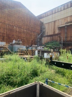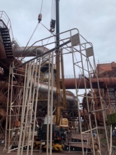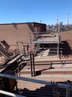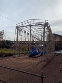 移動式テント倉庫鉄骨建て方。